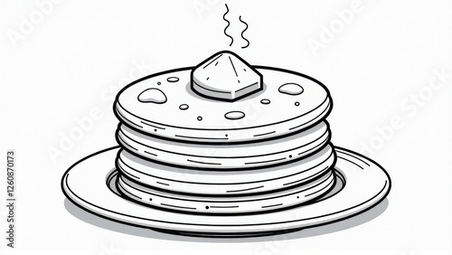 Delicious Stack of Pancakes with Butter - Line Art Illustration.