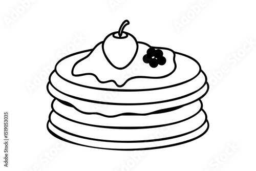 stack, breakfast, food, cherry, berry, sirup, sweet, dessert, delicious, morning, meal, eat, tasty, deliciously, cookery, cooking, illustration, line art, black-and-white, simple, graphic, vector, clip art, design element, menu, eatery