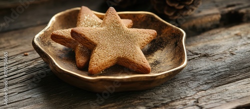 Delicious star shaped Christmas cookies presented in an elegant dish on a rustic wooden table perfect for holiday celebrations