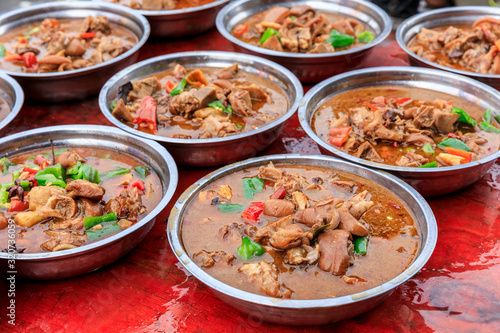 food, pork meat, meat, soup, health, nourishment, diet, stew, delicious, snack, dish, lunch, meal, healthy, dinner, epicure, cookery, chinese, sauce, cooking, traditional, green, spicey, natural, ingredient, closeup, nature, hot, cooked, eat, wooden, table, chinese food, china, bowl, hotel, fried, background, plate, eatery, fresh, asian, rural, banquet