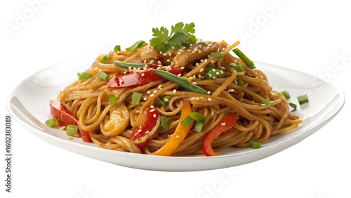 noodle, stir, fries, meal, vegetable, asian, cookery, dinner, lunch, food, healthy, cooking, delicious, tasty, fresh, epicure, culinary, receipe, spicey, savoury, eatery, eating, gastronomy, vegetarian, vegan, diet, nourishment, organic, homemade, ingredient, dish, plate, sesame, green, red, yellow, pepper, parsley, herb, garnish, kitchen, table, chopstick, culture, oriental, traditional, cooked, eat, health