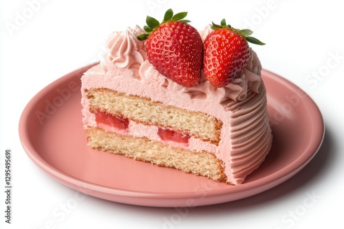 strawberry, cake, slice, plate, pink, dessert, sweet, indulgence, culinary, artistry, food, photo, baked, treat, pastry, creamy, frosting, layer, ripe, fresh, epicure, delicious, confection, bakery, presentation, close, studio, white, background, isolated, snack, tasty, temptation, celebration, holiday, occasion, romantic, valentine, love, birthday, party, homemade, confectionery, tempting