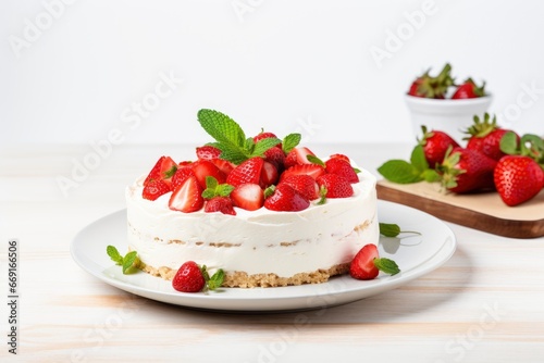 Delicious Strawberry Topped Cake on a White Plate Created With Generative AI Technology