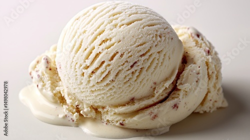 Delicious vanilla ice cream scoop on smooth white background for dessert lovers