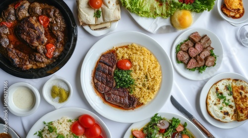 Delicious Variety of Grilled Meats and Fresh Side Dishes Plated Artfully