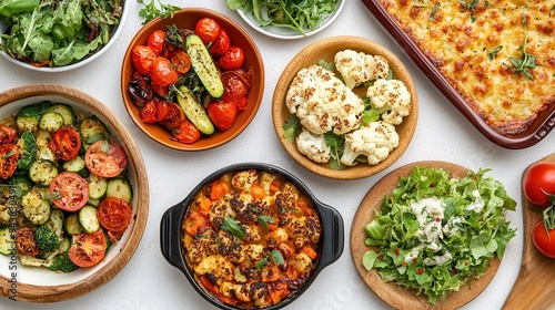 Delicious vegetable dishes are beautifully arranged on a rustic table, showcasing vibrant colors and fresh ingredients for a healthy meal