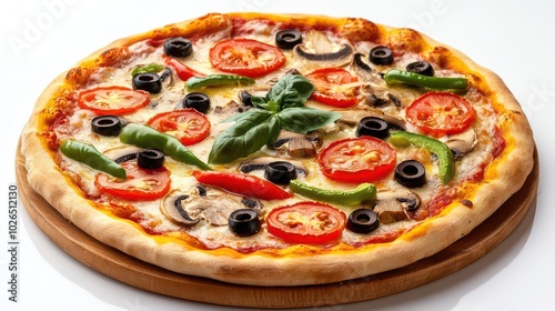 pizza, tomatoes, pepper, olive, basil, food, cookery, italian food, meal, cooking, dining, food photography, tasty, delicious, vegetarian, snack, take-out, comfort food, eatery, lunch, dinner, homemade, culinary, ingredient, savoury, cheesy, crust, epicure, nourishment, culinary arts