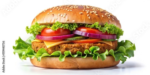 Delicious Vegetarian Burger Isolated on Transparent Background, Perfect for Healthy Eating, Plant-Based Diet, Vegan Recipes, and Culinary Inspiration