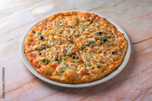 delicious vegetarian pizza on wood