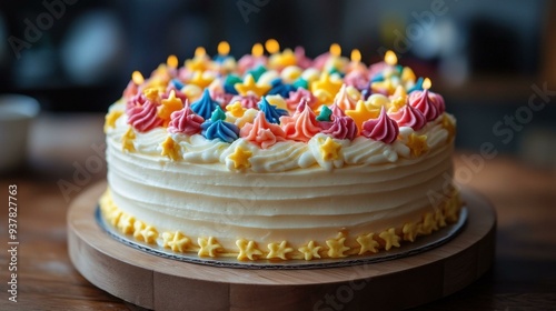Deliciously Decorated Birthday Cake with Colorful Frosting and Candles for a Festive Celebration