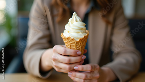 Delightful Flat Vector: Woman's Hands Holding Melting Ice Cream Cone - Capturing Sweet Moments