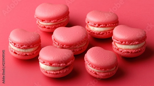 Delightful heart-shaped pink macarons on vibrant background sweet treats dessert photography food styling