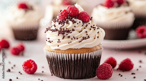 Delightful Raspberry Cupcake:Creamy Frosting, Chocolate, and Fresh Raspberries!