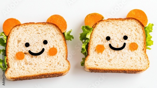 sandwich, food, fun, smile, cute, healthy, lunch, snack, ingredient, creativity, playfulness, happiness, children, meal, favor, presentation, vegetarian, easy, colourful, garnish, cheerful, bear, orange, lettuce, bread, cooking, vibrant, delightful, amusing, summer, picnic, gathering, family, homemade, alimentary, appetising, tasty, baking, preparation