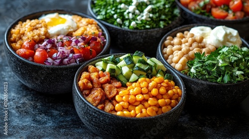 breakfast, take-away, bowl, fresh, ingredient, healthy, alimentary, meal, tomatoes, cucumber, corn, herb, diced, onion, chickpea, egg, vibrant, cookery, food, culinary, colourful, morning, diet, brunch, vegetarian, wholesome, delicious, favor, snack, easy, meal, salad, home, cooking, greener, cilantro, protein, nourishing, favor, epicure, sustaining, local, produce, weekend, tasty, delight, eating