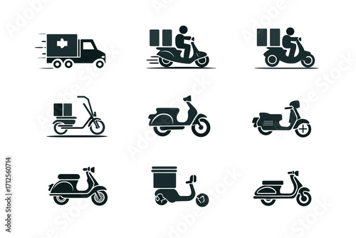 Delivery Vehicles and Scooters Vector Icons for Logistics on Transparent Background