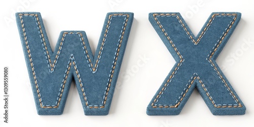 Denim WX Letters Stitched Jean Alphabet Concept, Fabric ,Textile