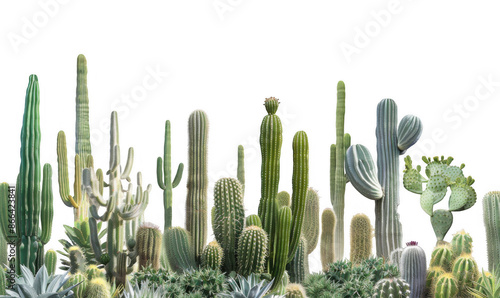 cactus, dense, flocked, various, species, nature, botanical, green, succulent, garden, flora, natural, tall, prickly, arid, vegetation, isolated, detailed