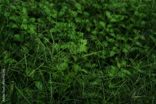dense green grass and leaves, featuring rich textures and deep green tones, perfect for nature-themed backgrounds and eco-friendly designs