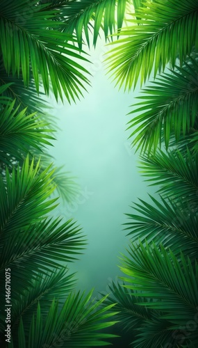 Dense, lush dark green palm fronds, tropical backdrop, natural background, botany, summer