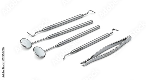 dental, instrument, oral, hygiene, dentistry, health, care, isolated, white, background, tool, mirror, probe, tweezer, exam, medicals, equipment, prevention, treatment, health care, wellness, clean, teeth, professional, dentist, clinic, studio, shot, sterile, steel, metal, shiny, closeup, precision, sharpened, macro, still life, object, single, nobody, arrangement, set, group, collection, cut-out, plain