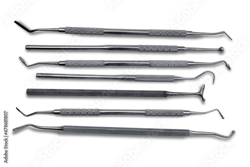isolated, white, tool, dental, various, row, equipment, dentist, tool, surgery, metal, instrument, medicine, steel, hygiene, hospital, health, teeth, care, clean, clinic, doctor, treatment, sharp, object, dentistry, stainless, closeup, sterile, set, medical equipment, health care, professional, surgeon, surgical, device, work tool, operation, metallic