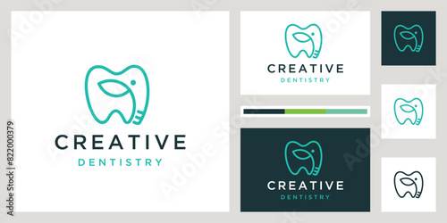 Dentistry logo with elephant animalabstract dental technology logo and business card template.