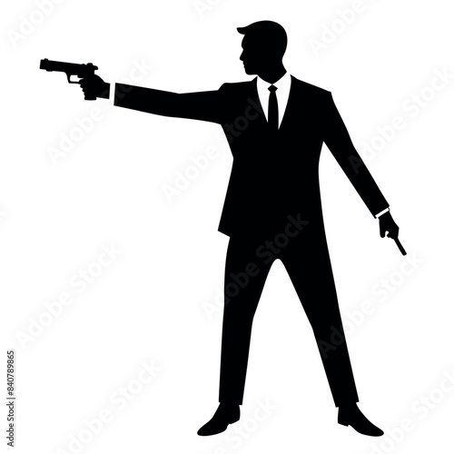 depicting a man in a suit pointing a gun in a front view perspective vector silhouette