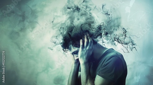 Depicting Mental Anxiety: A Portrait of a Young Adult Struggling with Inner Turmoil, Facial Expression Reflects Stress and Overwhelming Thoughts