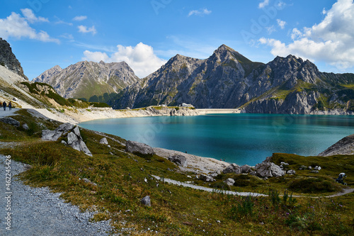 Der türkis-blaue Lünersee in Österreich Vorarlberg