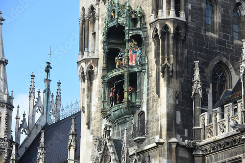 Der Turm des Rathauses in München mit dem Glockenspiel, Bayern, Deutschland, Europa