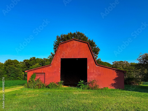 virginia, us, barn, red, rural, lawn, tree, copy space, tree, forest, blue, land, farm, sky, grass, building, agriculture, countryside, country, landscape