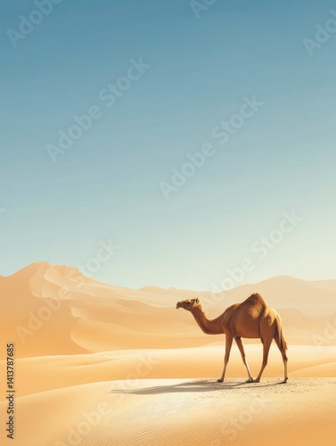 Desert Camel: Serene Sandscape in Golden Hour Light