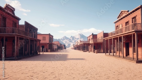 Deserted Western Town Street Old Saloon Wild West Frontier Desert Landscape Mountains