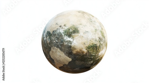 Desertified Earth globe, climate change impact, white background, environmental concern