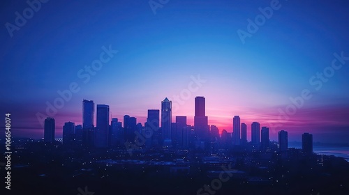 Design a city skyline at dusk, where the buildings are silhouetted against a gradient of blues as the day transitions to night.