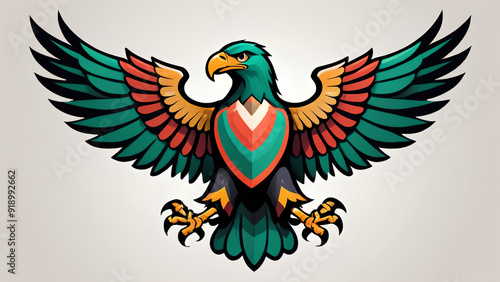 ethnicity, feather, mascot, eagle, badge, emblem, label, latina, mexico, mexican, latino, patriotic, state, symbolic, logotype, bird, cartoon, design, icon