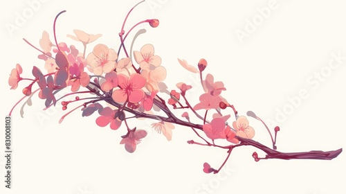 Design of a 2d illustration featuring a pink hue displaying a branch with seeds isolated