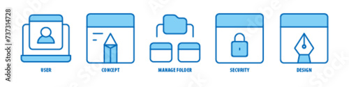 Design, Security, Manage Folder, Concept, User editable stroke outline icons set isolated on white background flat vector illustration.