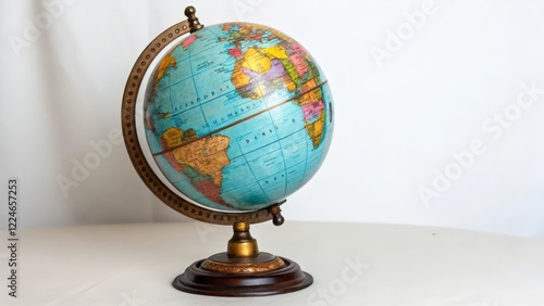 globe, earth, map, geography, earth, continent, ocean, travel, exploration, cartography, education, learning, school, office, desk, accessory, antique, vintage, brown, wood, metal, blue, green, sphere, round, model, miniature, surface, detail, texture, graphic, design, illustration, global, international, navigation, hemisphere, latitude, longitude, meridian, equator, water, colours, pattern, classic, old, retro