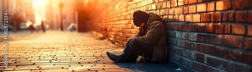 person, homeless, brick, wall, urban, area, heat, asphalt, poverty, shelter, street, shade, crowded, alone, struggle, survival, misery, hardship, distress, hopelessness, destitute, vulnerability, isolation, disused, crisis, social, issue, despair, plight, adversity