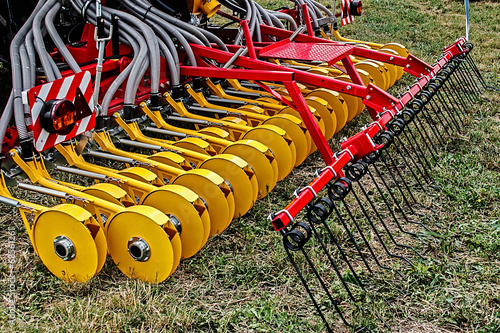agriculture, disc, disc, drill, equipment, automation, machine, wheel, agricultural, machinery, industry, farm, farmer, farming, metal, steel, iron, black, green, red, yellow, blade, grass, country, cultivation, cultivate, detail, exhibit, exhibition, grooved, harvest, heavy, many, produce, rural, season, work, crop, cut, earth, field, ground, harrow, harrowing, land, slice, dirtied