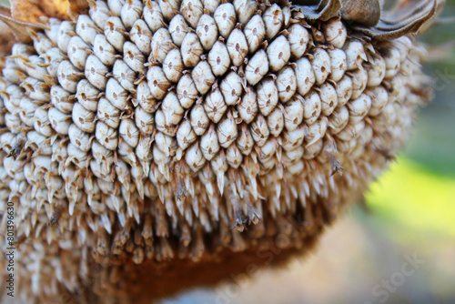 Detail of dried sunflower with seeds