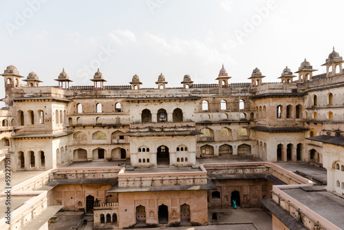 Detail of the Jahangir Mahal Palace in Orchha, Madhya Pradesh, India.
