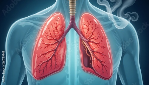 Detailed 3D Illustration of Human Lungs and Respiratory System Affected by Smoking