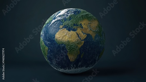 Detailed 3D Render of Earth Featuring Landmasses, Oceans, and Atmospheric Texture on a Dark Background for Educational and Creative Use