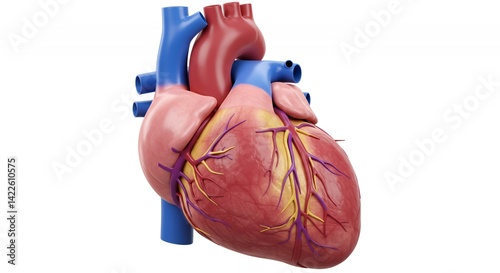 Detailed 3d Rendering of Human Heart Anatomy Featuring Red Arteries and Blue Veins on a White Background