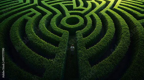 Detailed Aerial View of a Green Hedge Maze