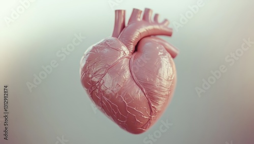 Detailed anatomical model of a human heart showcasing realistic textures, intricate blood vessels, and accurate heart structure in a neutral background
