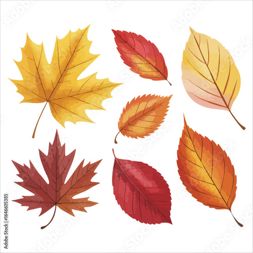 detailed autumn leaf varieties vector graphic plain background